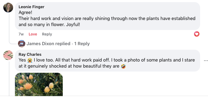 James’ journey began with a simple nature strip makeover outside his own home, where he replaced the grass with an array of native, flowering plants that burst with colour and life. The transformation received an outpouring of positive comments from neighbours and the local community, inspiring him to take his love for gardening and conservation a step further. And so Pollinator Project was born, with the mission to make people happy, beautify local suburbs and, most importantly, help restore biodiversity and revive pollinator numbers. Today, James and Pollinator Project are transforming dull, grassy strips into thriving ecosystems filled with native flowering plants that support wildlife, enhance community pride and contribute to a sustainable future.